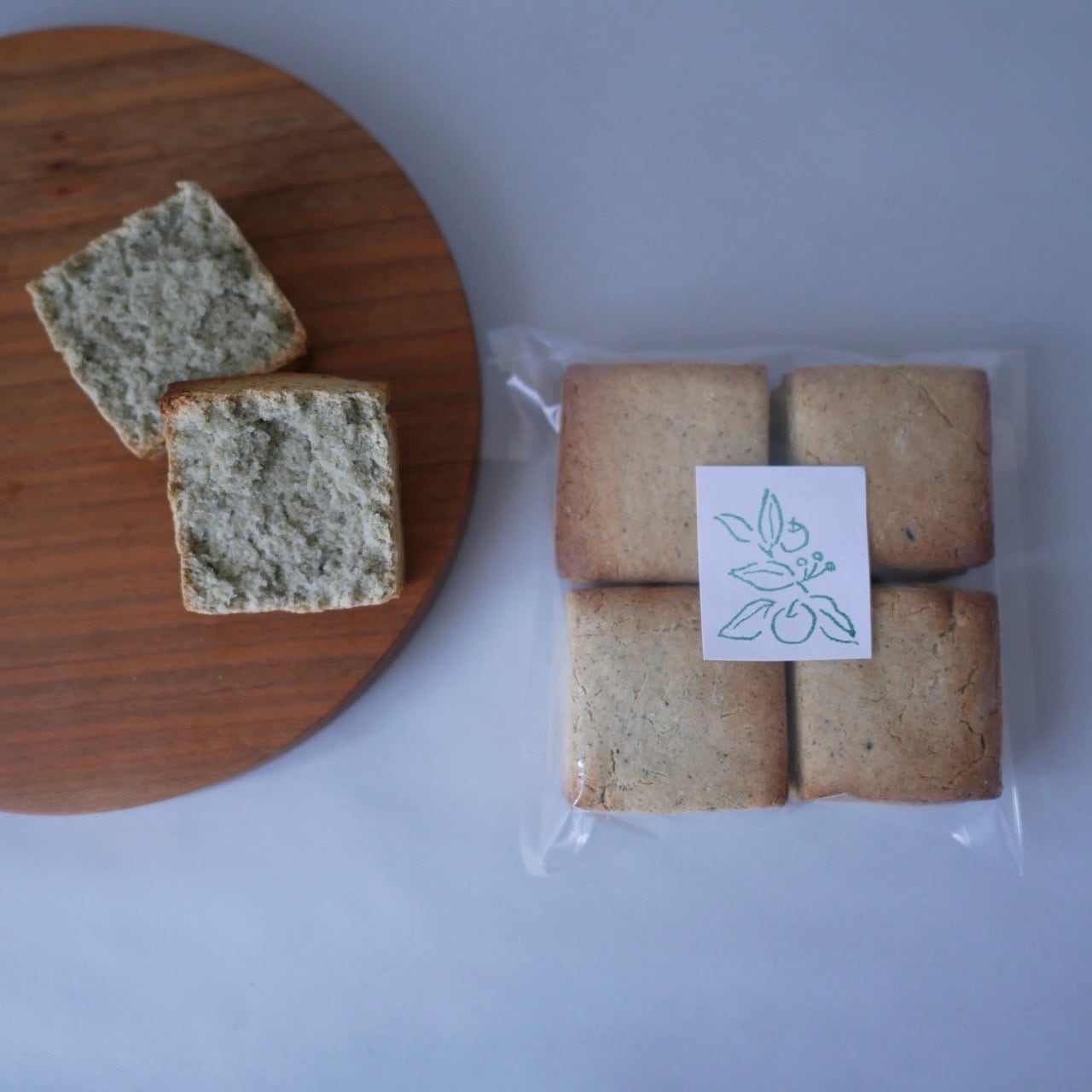 小さめサイズのスコーンです。春を感じるよもぎを練りこみました。少し温めてからお召し上がりください。